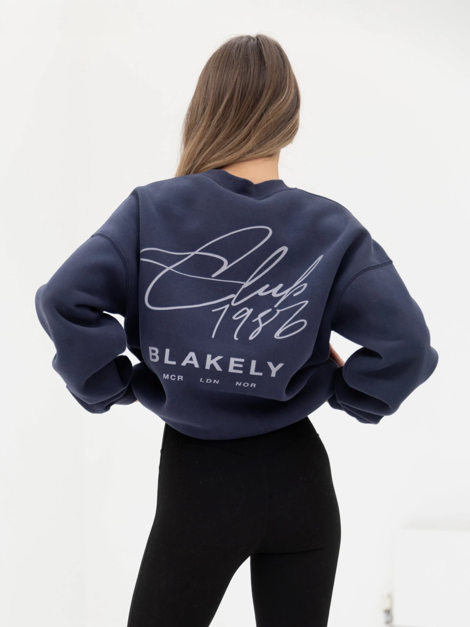 Part of this collection is our Club Jumper in True Navy, crafted from a soft cotton blend with a relaxed fit. The jumper has a ribbed hem and cuffs and a crew neck design. It has been finished with our screen-printed Club graphic in Pale Lilac on the back and front.