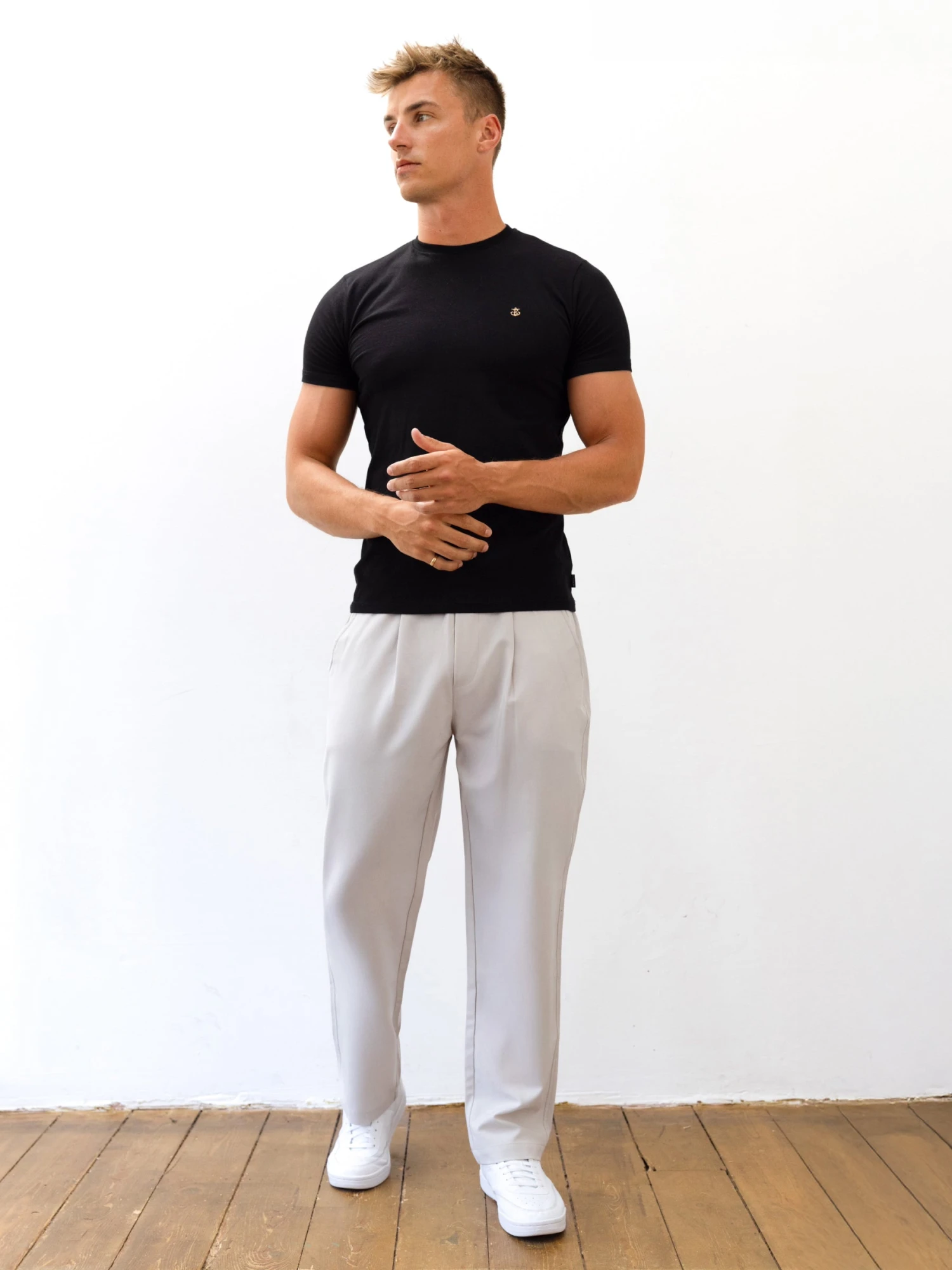 Our Preston Trousers are crafted from soft, breathable fabric — perfect for warmer days. Tailored for a relaxed yet refined fit, they feature a hidden drawstring waistband, side pockets, and subtle pocket tab branding. A smart summer essential that balances comfort and style.