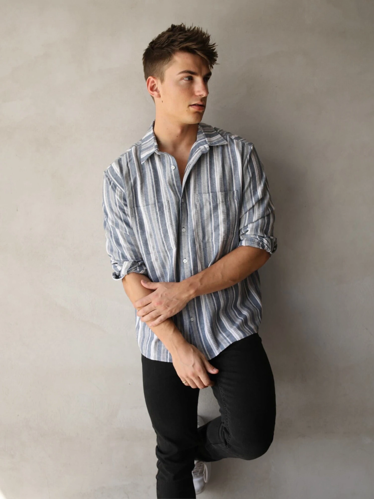 - Button-up design
