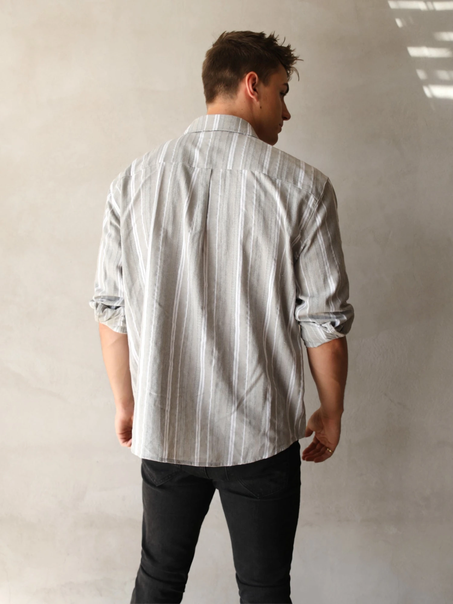 The Rialto Stripe Shirt in grey has a lightweight fabrication and a long-sleeve design. It has been finished with a relaxed fit and striped pattern.